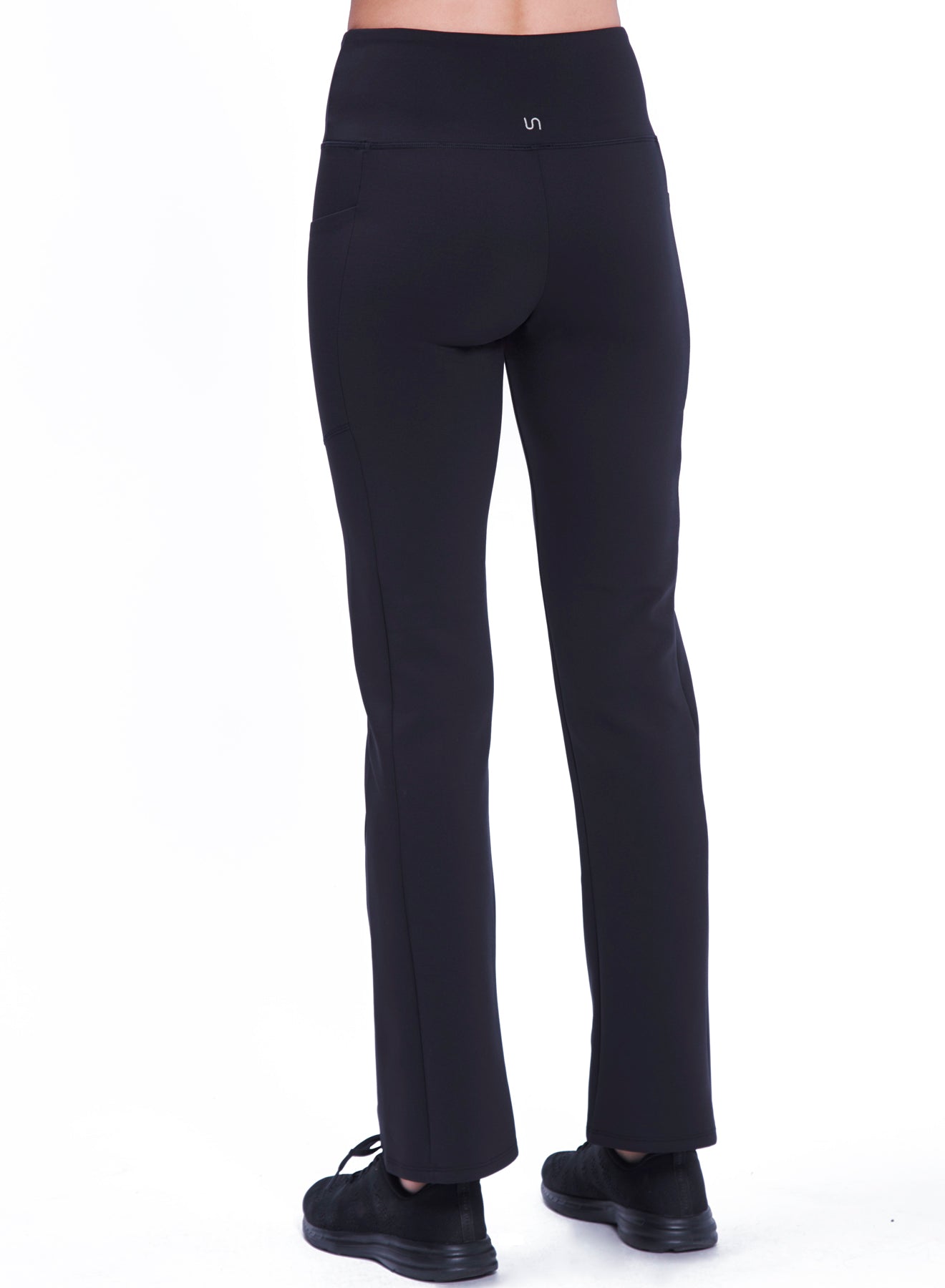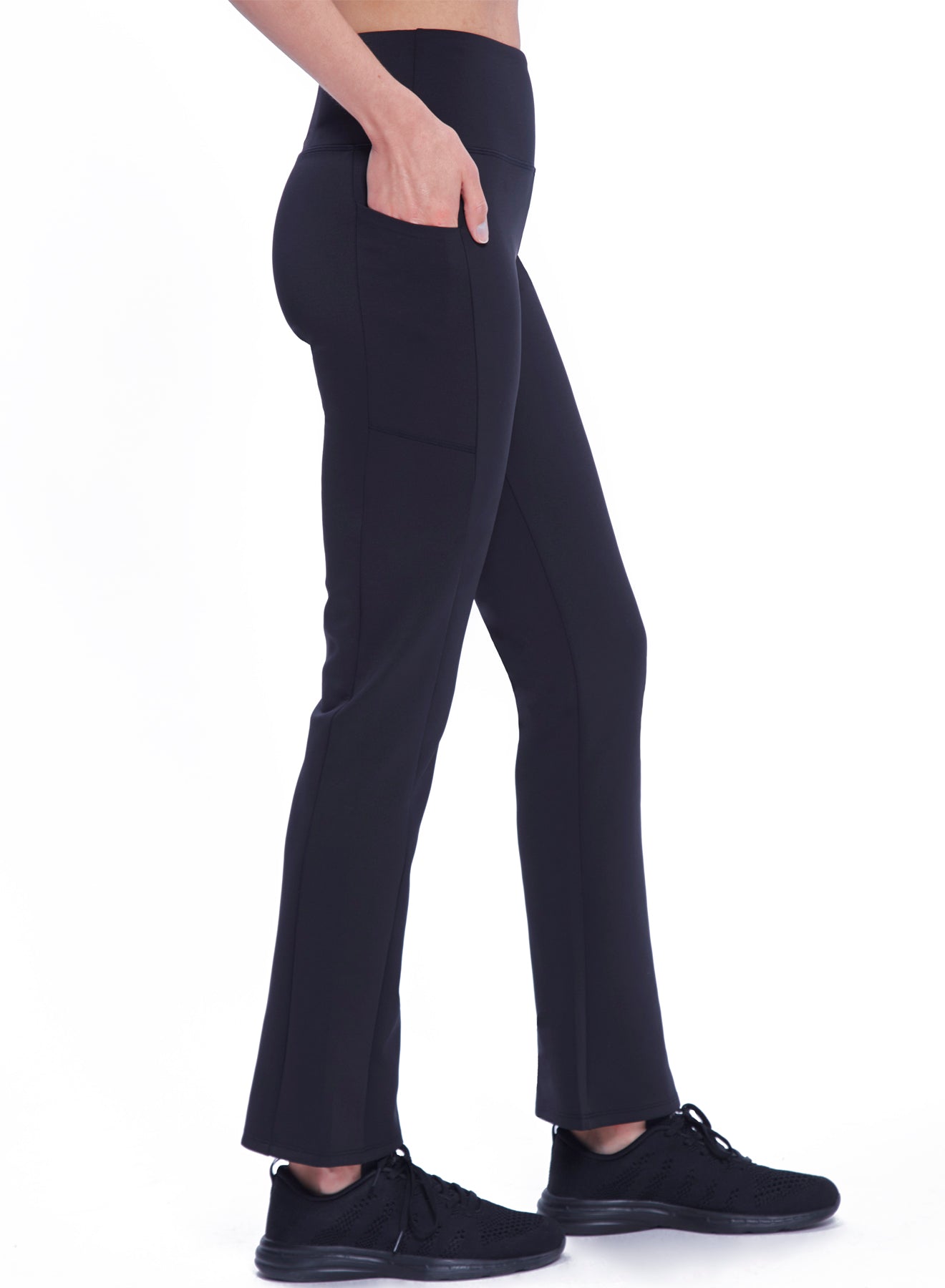 This style lives up to its name. Crafted from a lightweight scuba/neoprene material, this pant moves with you but also holds you in in all the right places. The wide, high waist helps nip the waist in, and the bootcut opening provides a sleek silhouette. They feature a roomy side pocket on each side. Meant to be worn for anything from working out to work, these literally are pants to wear EVERYWHERE. The style is designed to be fitted on top and semi relaxed through the legs and run true to size.