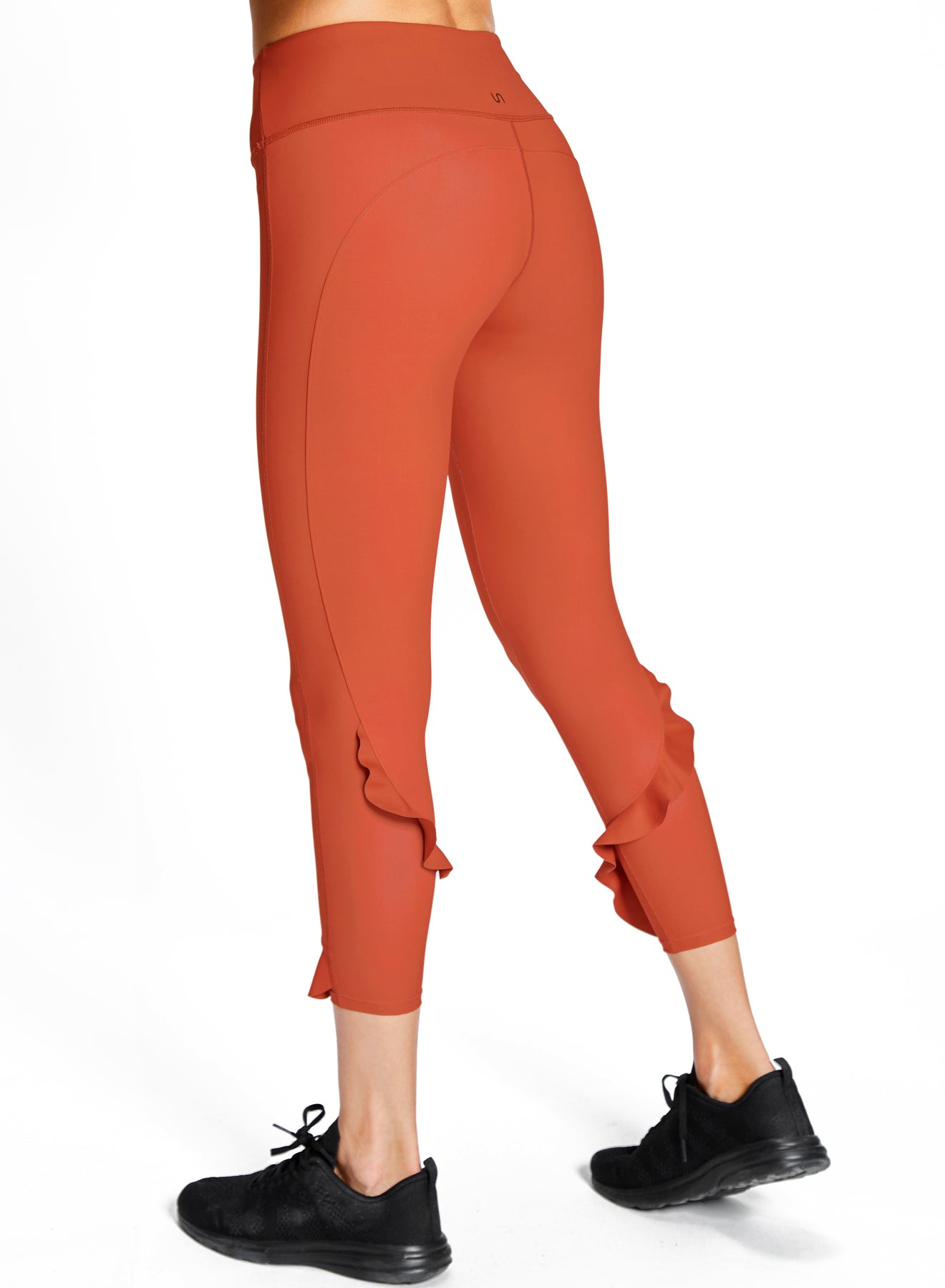 Feminine detailing matched with performance materials, our Ruffle Legging is crafted of buttery soft 4-way stretch interlock fabric that moves with you. It offers light compression and an extra internal panel in the waistband to smooth and shape.
